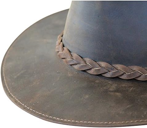 B&S Premium Leather Fedora – Wide Brim Hat Leather – Water Resistant – Tan or Dark Brown Available