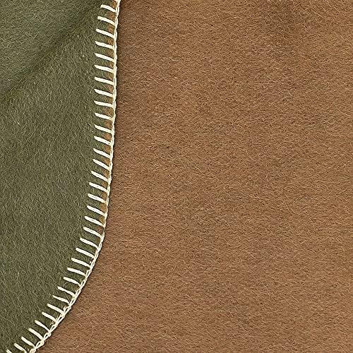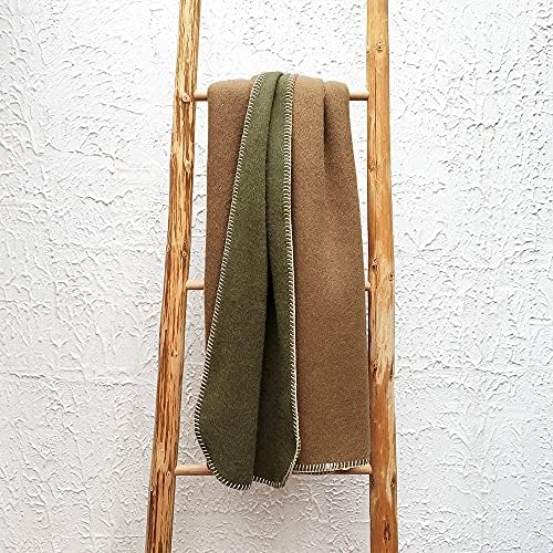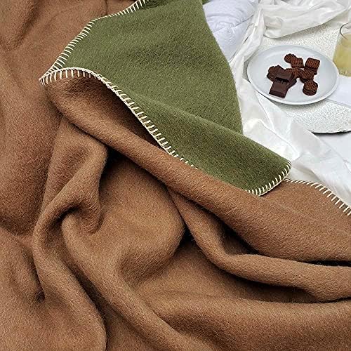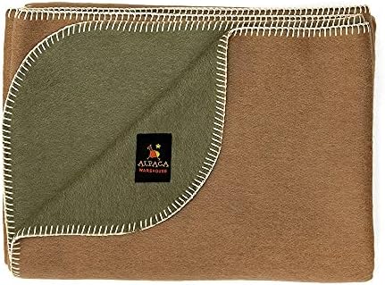 Thick Alpaca Wool Blanket – Heavyweight Alpaca Wool Blanket for Camping Outdoors or Using Indoors | Soft Peruvian Alpaca Wool Blankets (Olive Green/Soft Camel, Travel Size)