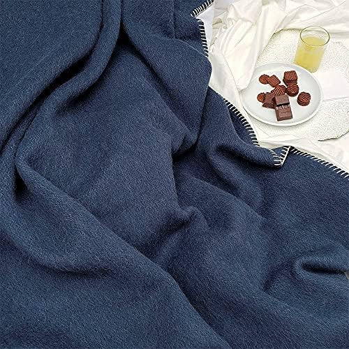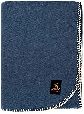 Thick Alpaca Wool Blanket Heavyweight Camping Outdoors Indoors Soft Peru Travel Size Solid Color Design (Steel Blue, Travel Size)